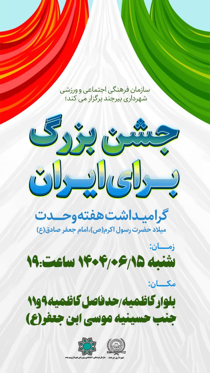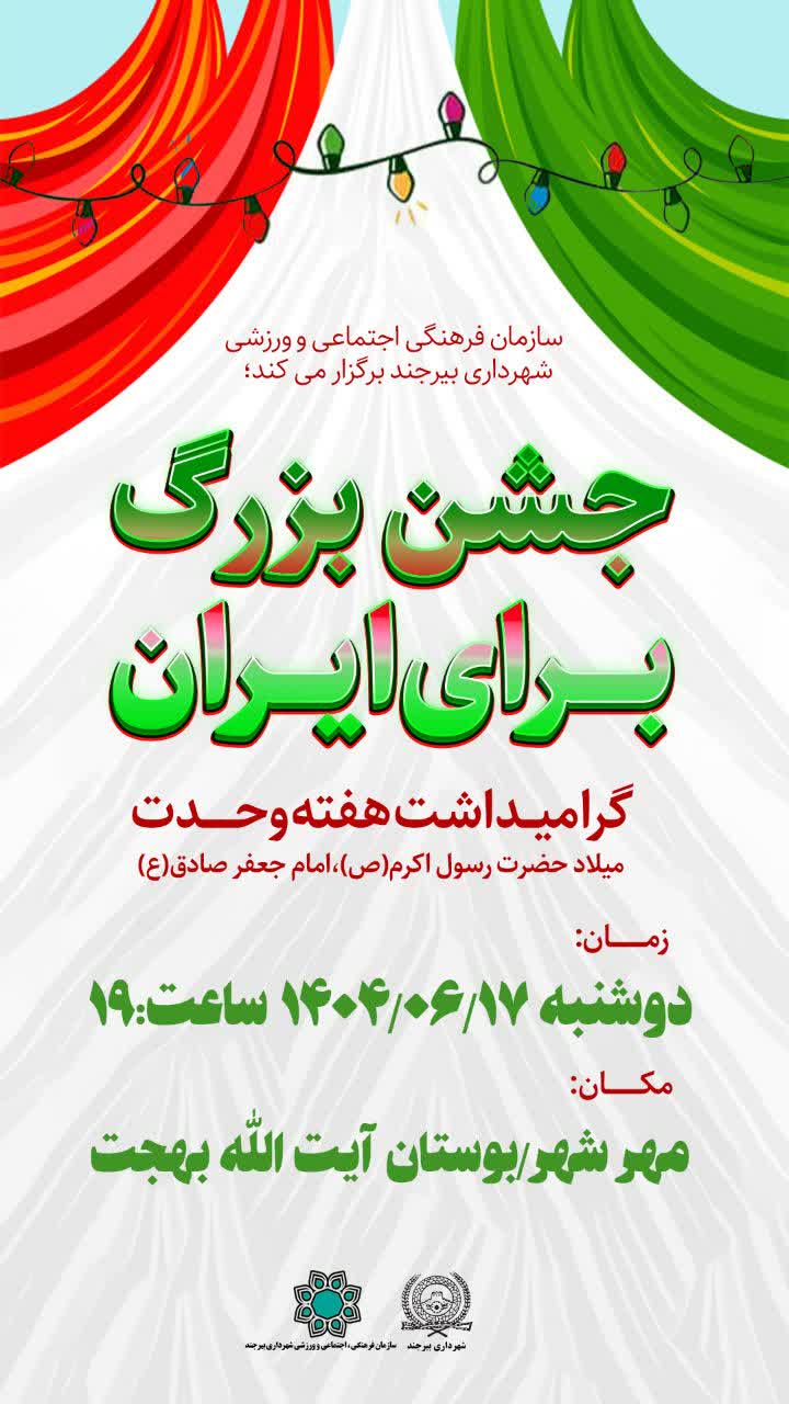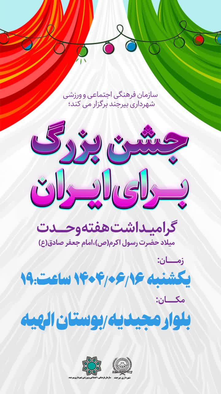 وی به برگزاری جشنهای بزرگ هفته وحدت در محلات بیرجند، اشاره کرد و و افزود: سازمان فرهنگی، اجتماعی و ورزشی شهرداری بیرجند این جشنها را از روز شنبه ۱۵ شهریورماه لغایت ۱۸ شهریورماه، برگزار میکند.
