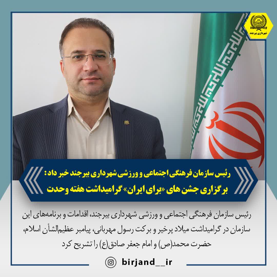 رئیس سازمان فرهنگی اجتماعی و ورزشی شهرداری بیرجند، اقدامات و برنامههای این سازمان در گرامیداشت میلاد پرخیر و برکت رسول مهربانی، پیامبر عظیمالشأن اسلام، حضرت محمد(ص) و امام جعفر صادق(ع) را تشریح کرد.