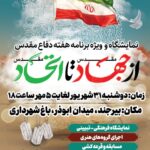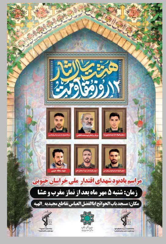 از جمله این برنامه ها می توان از برگزاری دومین اجلاسیه شهدای هنرمند خراسان جنوبی در آستانه هفته دفاع مقدس، برگزاری ویژه برنامه ” فاتحان قله غیرت” در بوستان وحدت و برگزاری مراسم یادبود اقتدار ملی تحت عنوان ” هشت سال ایثار، ۱۲ روز مقاومت” در محل مسجد حضرت اباالفضل العباس الهیه یاد برد.
