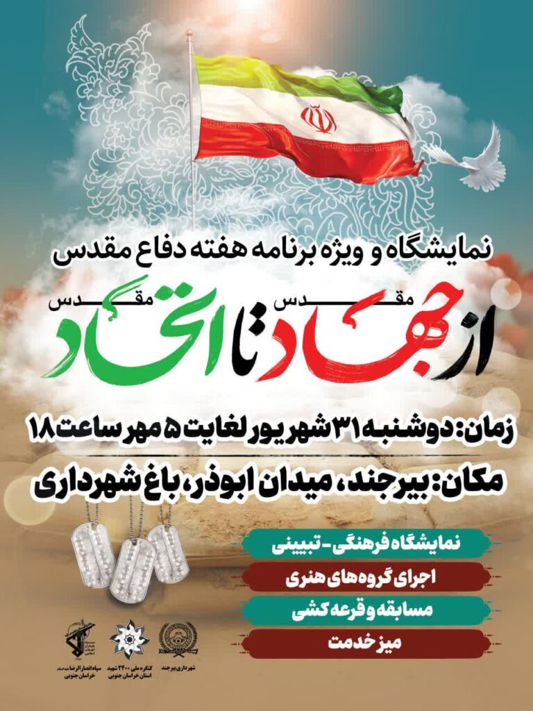 محمد رمضانی رئیس سازمان فرهنگی، اجتماعی و ورزشی شهرداری بیرجند ضمن اعلام خبر برپایی نمایشگاه هفته دفاع مقدس در باغ شهرداری اعلام داشت شهرداری بیرجند مشارکت جدی در برگزاری هرچه بهتر برنامه های دیگر نهادهای مردمی و حاکمیتی نیز داشته است. از جمله این برنامه ها می توان از برگزاری دومین اجلاسیه شهدای هنرمند خراسان […]